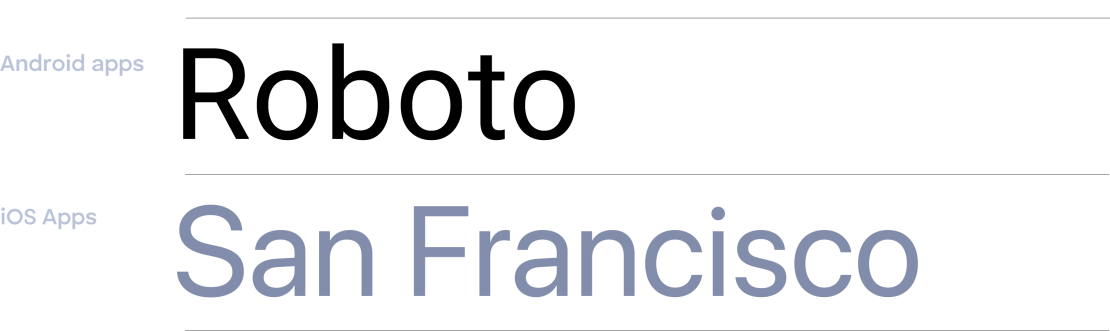 For in-app interfaces, we use Roboto, a modern sans-serif typeface designed for readability on screens. For the iOS apps the font used is a default IOS font San Francisco.
