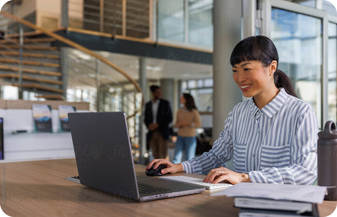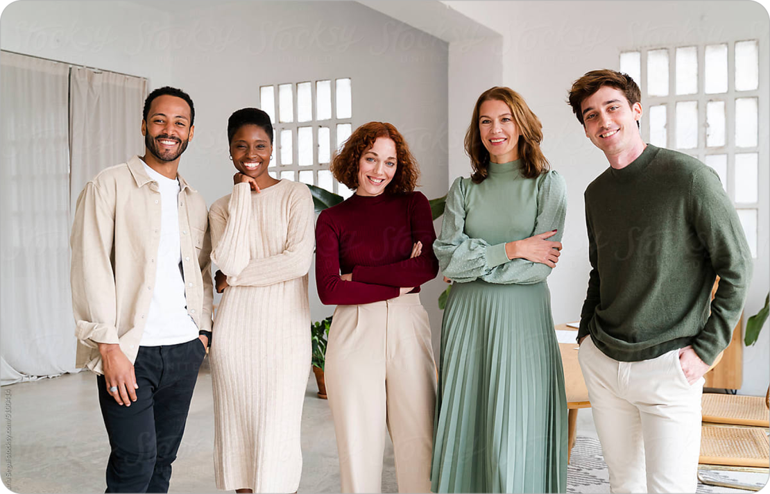 Photography has a light and airy aesthetic, using natural lighting to create optimistic atmosphere, while pops of brand color add energy. Compositions are clean and uncluttered, keeping the focus on people in modern work settings. Neutral backdrops ensure clarity and balance. Skin tones remain honest with minimal retouching, reinforcing authenticity.