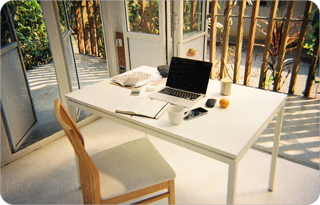Editorial or conceptual images, which use simple visual metaphors to express ideas like “less chaos, more time”.
