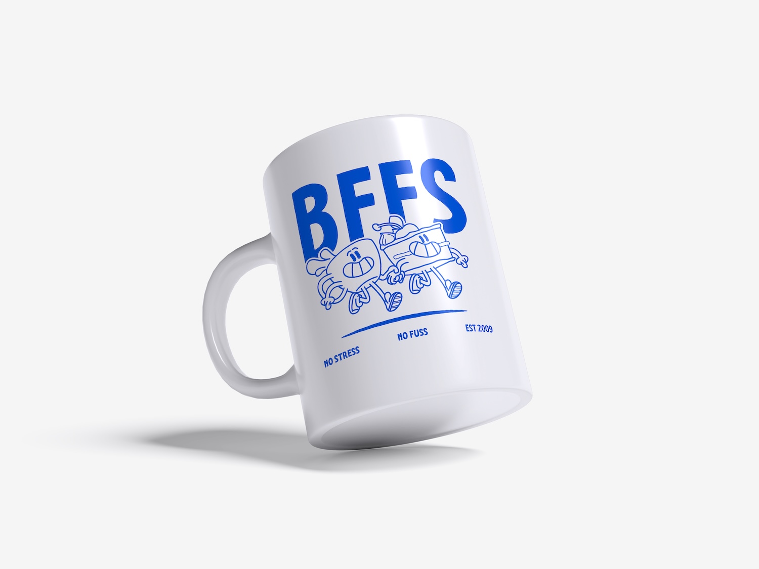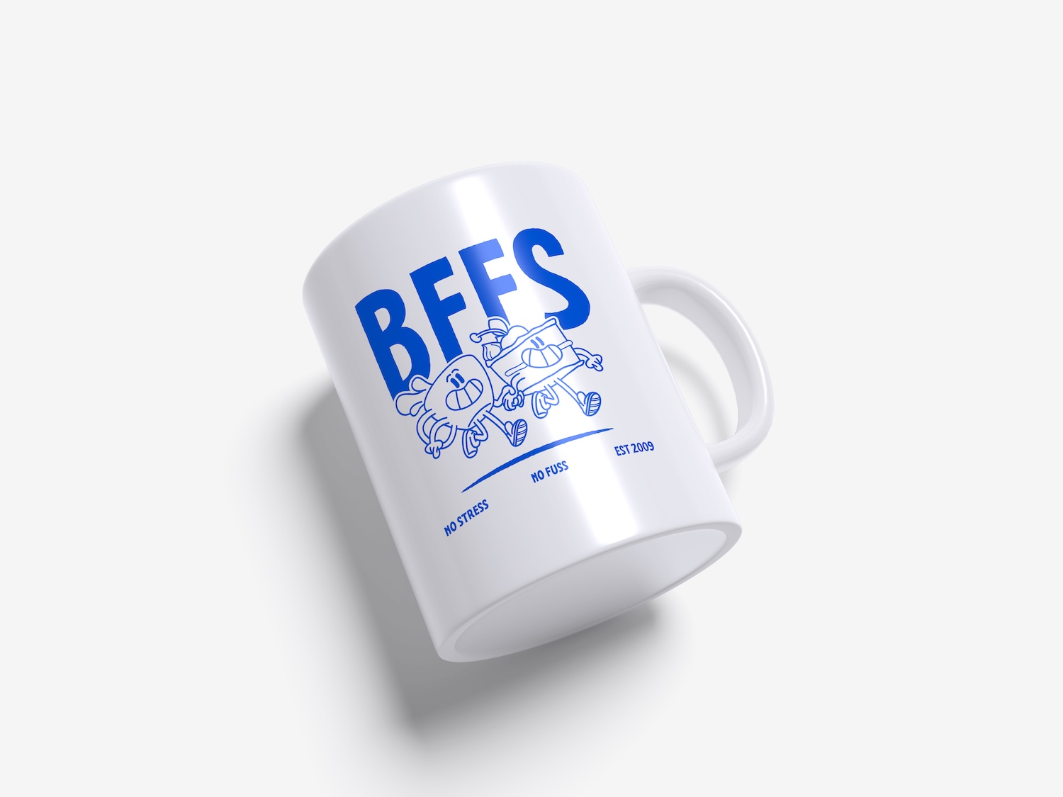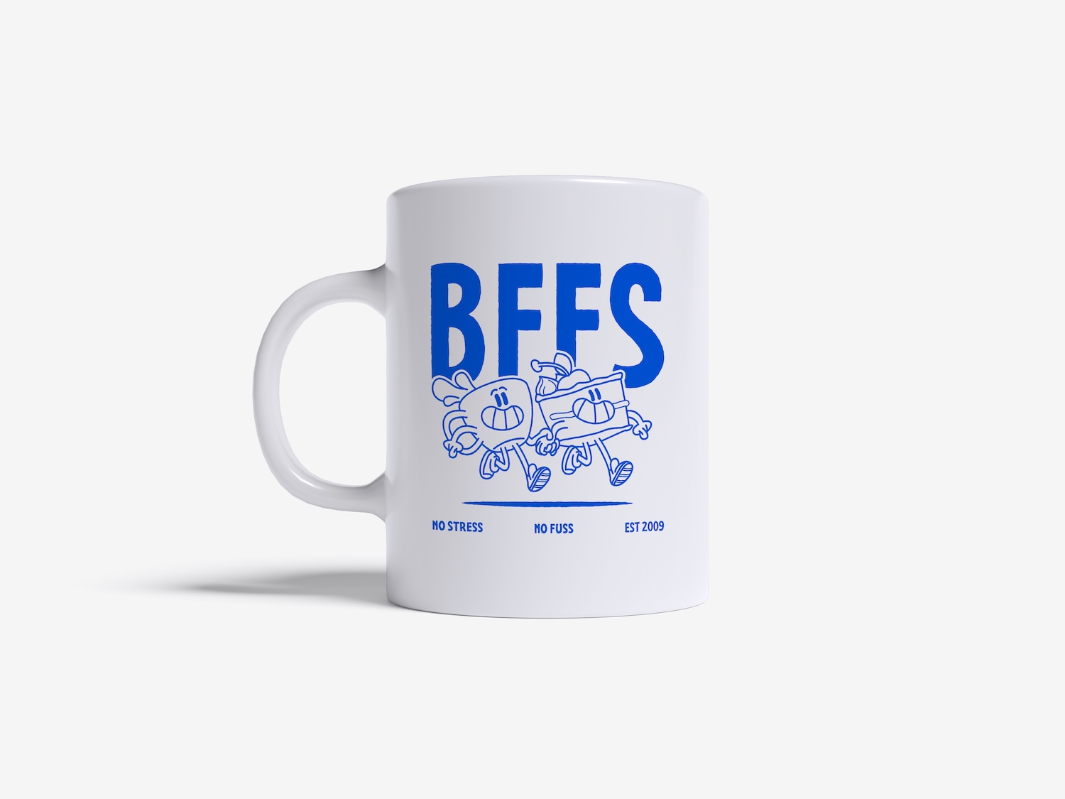 Matte white coffee mug with print.