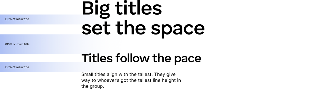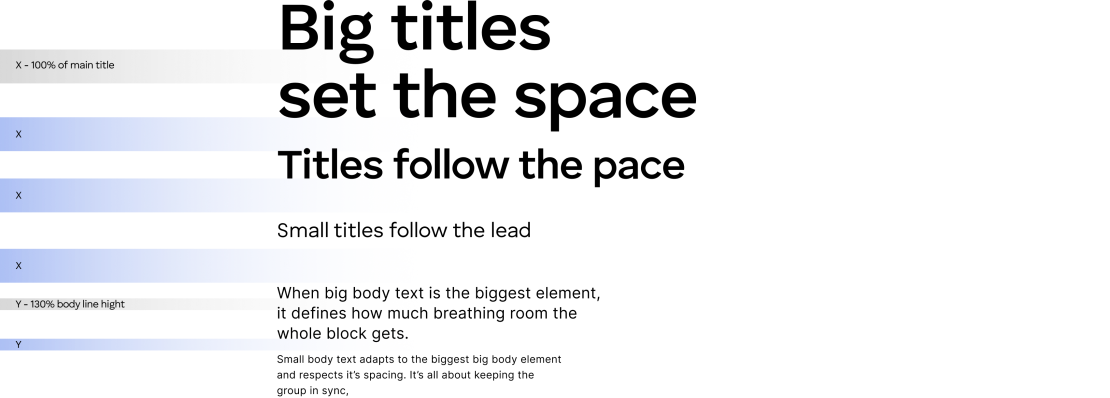 The minimum spacing between titles and body text is defined by the line height of the largest element in the group, whether it’s a title or a body paragraph. This ensures enough breathing room in the layout and maintains visual clarity across the hierarchy.