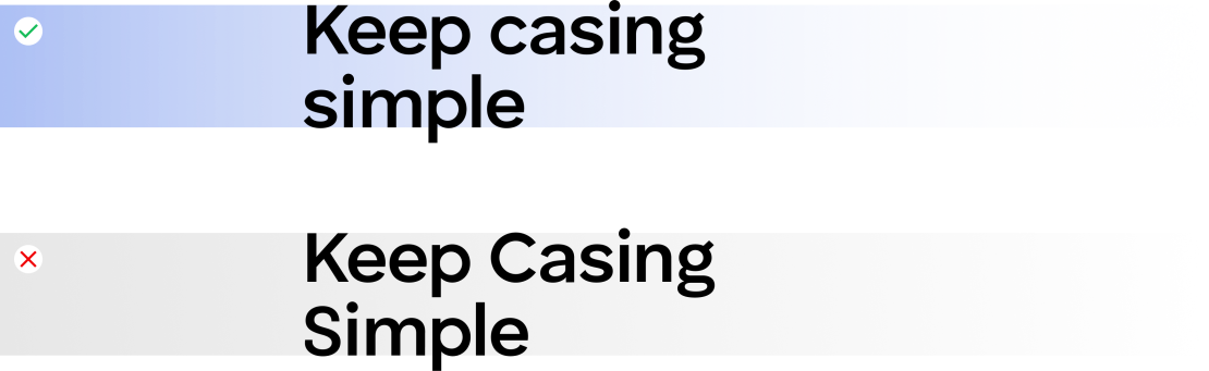 In our system, titles and body text use sentence case, so only the first word is capitalized. Avoid title case (Capitalizing Every Word) because it breaks our brand’s tone and look.